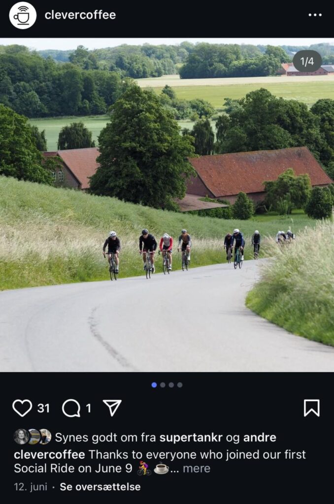 Dagen før jeg startede hos CleverCoffee, havde de afholdt Social Ride, og jeg fik til opgave at udarbejde et opslag til deres sociale medier, der formidlede stemningen og indholdet fra arrangementet.
